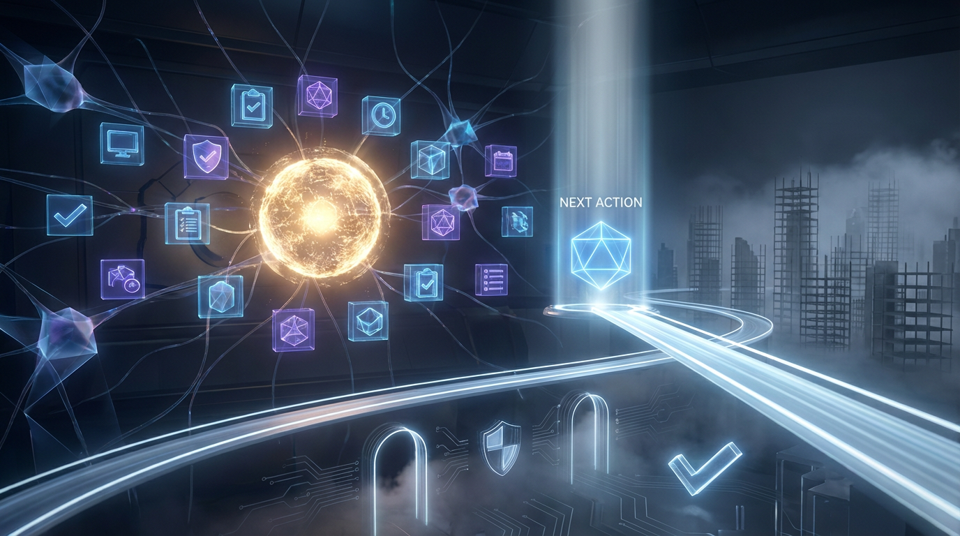 Next-action workflow for proposal, verification, and execution