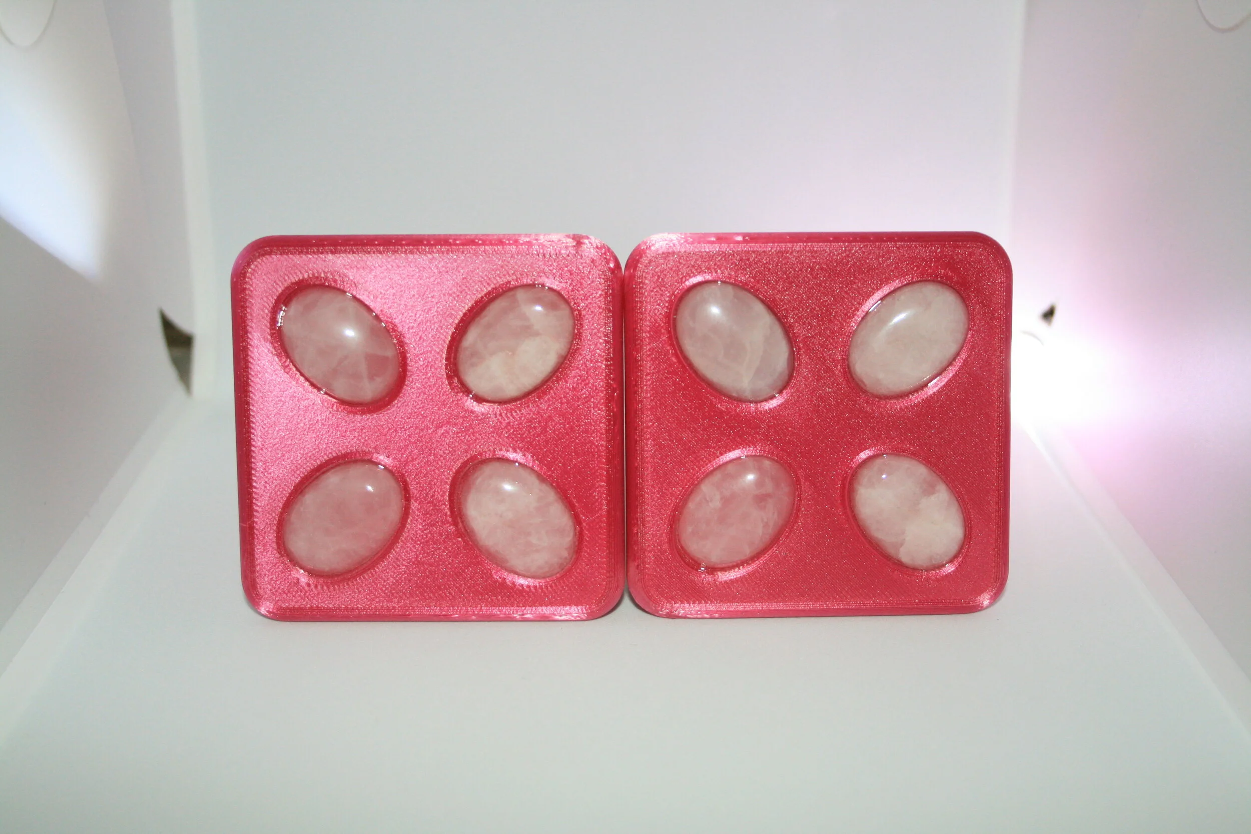 The shiny pink PLA used to create the pyramid as well as the Rose Quartz stones themselves hold the pink vibration, and when the scalar energy field in combination with the exterior geometric shape is applied to the crystals, it forces Rose Quartz stone energy frequency all up and throughout the pyramid itself.